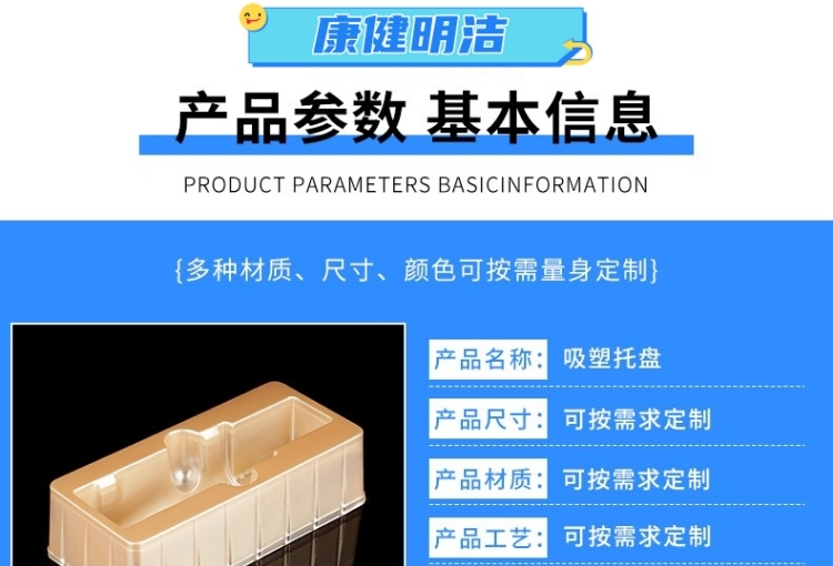 滄州明潔致力生產保健品吸塑包裝,醫藥吸塑盒,吸塑內托,食品吸塑內托,化妝品吸塑內襯,五金工具吸塑包裝,電子托盤吸塑包裝,玩具吸塑包裝,果蔬盒,PP/PVC/PS/PET/BOPS吸塑包裝制品。用心選材,規格眾多,款式新穎,質量過硬。