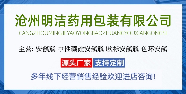 滄州明潔專注于低硼硅玻璃安瓿瓶,玻璃安瓿,注射劑安瓿瓶,棕色安瓿瓶,安瓿瓶,茶色安瓿瓶,琥珀色安瓿瓶,中性硼硅安瓿瓶,易折安瓶,色環(huán)刻痕安瓿瓶、印字安瓿瓶,易折安瓿,針劑瓶,注射劑瓶,曲頸安瓿瓶,用心選材,品質(zhì)過硬。