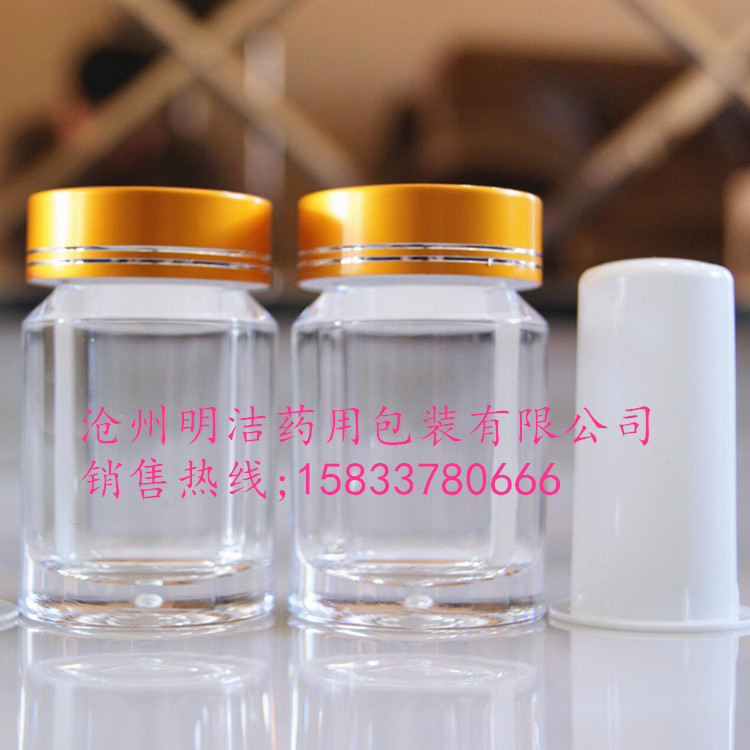 亞克力瓶身+金色鋁瓶蓋+外套PP袋(防刮擦)用途:可用于裝各種固體,膠囊,精片,粉末,片劑等,適用范圍廣。
