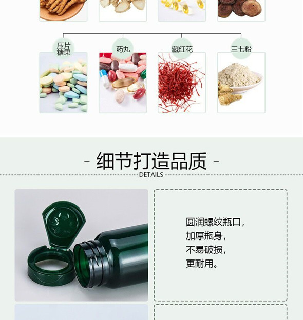 滄州明潔生產銷售避光保健品瓶,糖果瓶,綠色翻蓋瓶,壓片糖果瓶,黑色保健品瓶,鈣片粉劑瓶,綠色保健品瓶,中藥粉瓶,藥片瓶,膠囊瓶,藥丸瓶,軟膠囊瓶,亞克力瓶,壓片糖果瓶,保健品塑料瓶,中藥丸瓶,避光塑料瓶,固體片劑瓶,塑料藥瓶,產品規格全,外觀新穎,彰顯大氣。