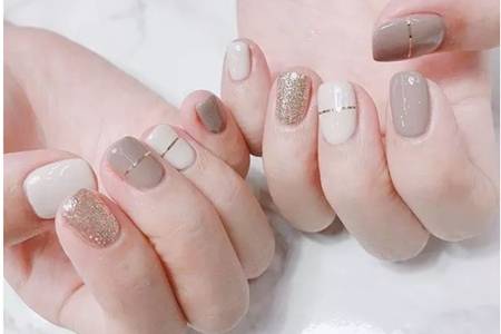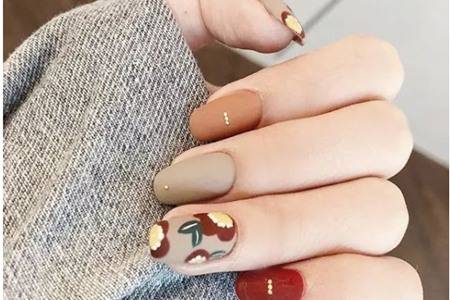奶茶色_溫柔,而且淺色很顯皮膚白,棕色和灰色的搭配,用小珍珠做裝飾讓指甲更有活力。添加雅致的花朵繪畫,整個美甲顯得豐富又有層次感。